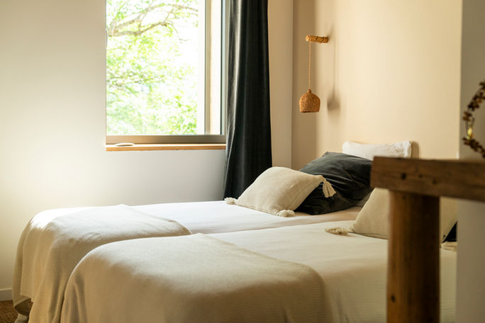 Le gîte dispose de deux chambres à l’étage, à la décoration chaleureuse et authentique.